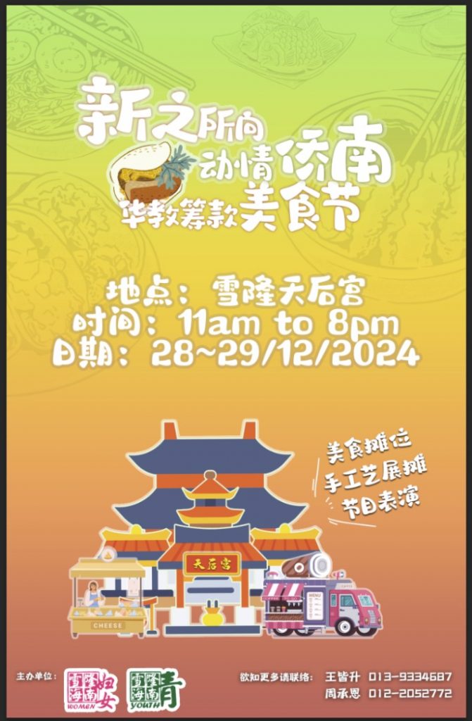 The Chinese Education Charity Food Festival, co-organized by the Selangor and Kuala Lumpur Hainan Association Youth and Women Section, will be held at the end of the year. This Food Festival aims raising funds to support Chinese education. It also serves as a premium platform for businesses to showcase and promote their brand and product. We warmly invite you to participate and join us in making this event a success!